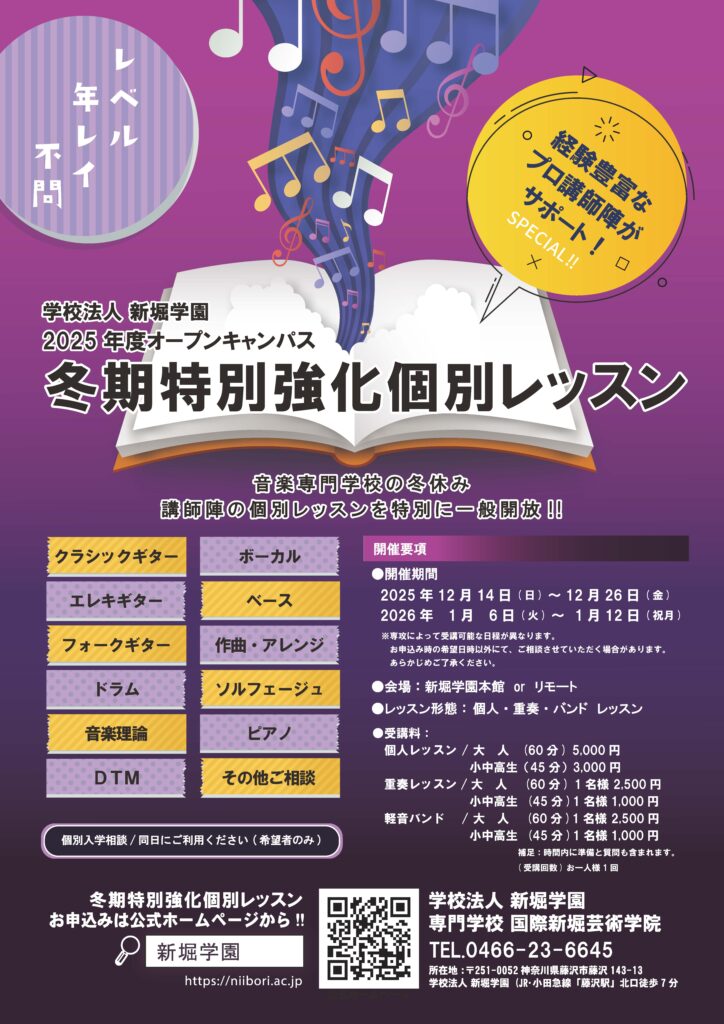新堀学園・国際新堀芸術学院では、音楽専門学校の冬休みに合わせて
